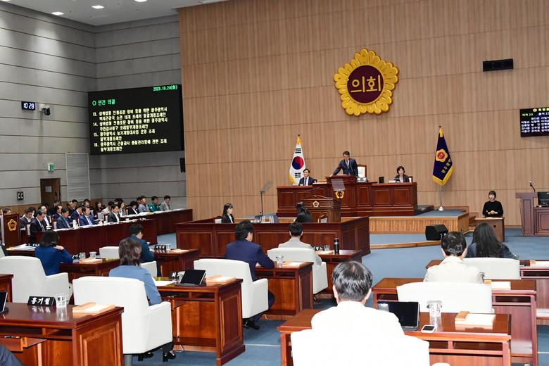 한편, 이날 본회의에서는 ▲안평환 의원, ‘일방적인 광주~송정역 셔틀열차 운행중단 계획은 주민에 대한 신뢰를 저버리는 행정이다.’ ▲이귀순 의원, ‘고강도 긴축 재정에 따른 폭넓은 대책 마련 촉구’ ▲강수훈 의원, ‘궁금한 이야기, 광주 도시가스 비용 상승의 진실!’ 주제로 5분 자유발언을 했다.