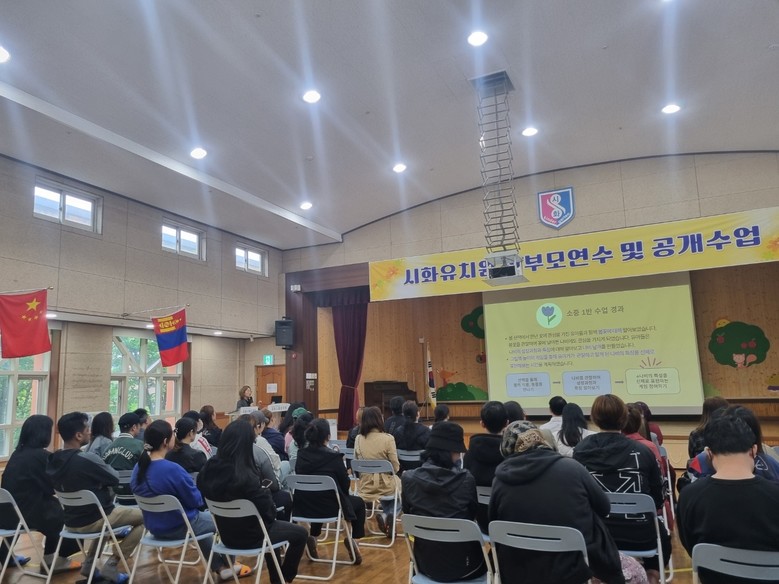 [시흥시 세계타임즈=송민수 기자] 시화유치원(원장 양인숙)은 4월 25일, 학부모를 대상으로 공개수업을 진행했다. ‘고운 마음! 오색빛깔! 인성 더하기’라는 주제 아래, 다양한 교육활동을 선보였다. 3세와 4세는 유아들은 자연을 주제로 ‘나비가 꽃으로 날아갔어요’, ‘꿈틀꿈틀 지렁이’, ‘리듬악기 연주’ 등의 활동을 통해 자연과 친밀해졌다. 또한 5세 및 특수학급, 다문화특별학급 등은 ‘출판 기념회’, ‘파라슈트로 놀이해요’, ‘꽃길 따라 여행’,‘너는 어떤 꽃을 피울래?’ 등의 활동으로 각 반의 특색을 살린 교육을 진행했다.