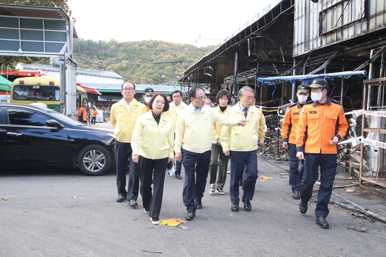 시의원들은 화재 현장을 직접 둘러보며 불의의 사고로 막중한 피해를 본 상인들을 위로하고, 사고 수습에 여념이 없는 관계 공무원들을 격려하는 한편, 이러한 사태가 반복되지 않도록 철저한 원인 규명과 개선 대책 마련을 당부했다.