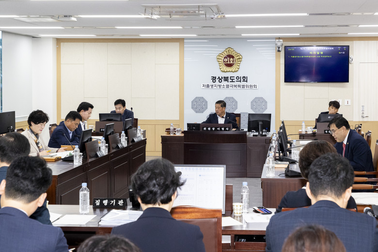 [경북 세계타임즈=한윤석 기자] 경상북도의회 저출생지방소멸극복특별위원회(위원장 이형식)는 제350회 임시회 기간 중 10월 22일(화) 저출생지방소멸 관련 부서로부터 2024년도 핵심이슈인 저출생 및 지방소멸 관련 업무보고를 청취하고 질의·토론을 하였다.