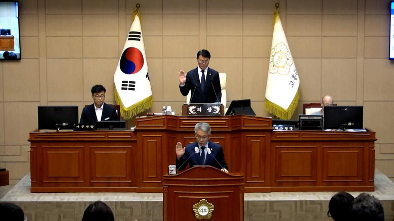 [고흥군 세계타임즈=우덕현 기자] 고흥군의회(의장 류제동)는 지난 2일(월) 제329회 임시회 1차 본회의에 앞서 공영민 군수를 비롯한 간부급 공무원들이 참석한 가운데 청렴실천결의를 실시함으로써 투명하고 신뢰받는 의회로 거듭나기 위한 발걸음을 이어가고 있어 눈길을 끌었다.