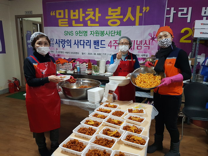현재 9,200명으로 구성된 사랑의 사다리 밴드는 지방자치단체의 보조금 지원없이 회원들의 후원금으로 매주 2회 대전시 지역아동센터에 닭강정 봉사로 따뜻한 사랑 나눔을 펼치고 있다.