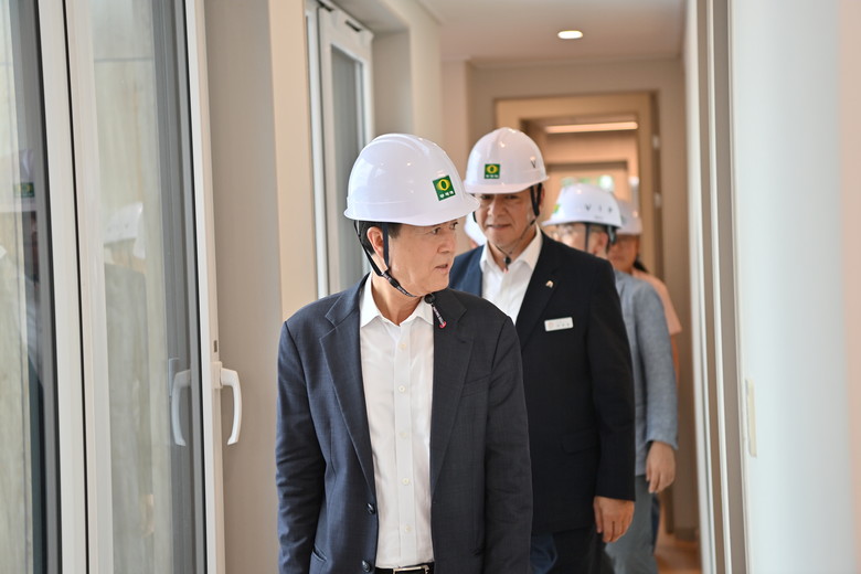 이날 현장 점검에서 김태흠 지사는 신풍지구 사업 진행 상황과 입주자 모집 및 운영관리 계획 등을 듣고 샘플하우스를 살피며, 명품 주택을 안전하게 만들어 줄 것을 당부했다.