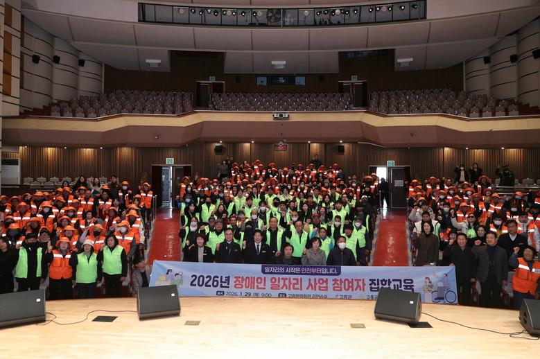 [고흥군 세계타임즈=우덕현 기자] 고흥군(군수 공영민)은 29일 고흥문화회관 김연수실에서 장애인일자리사업 참여자 204명을 대상으로 ‘2026년 장애인일자리사업 참여자 안전교육’을 실시했다고 밝혔다.