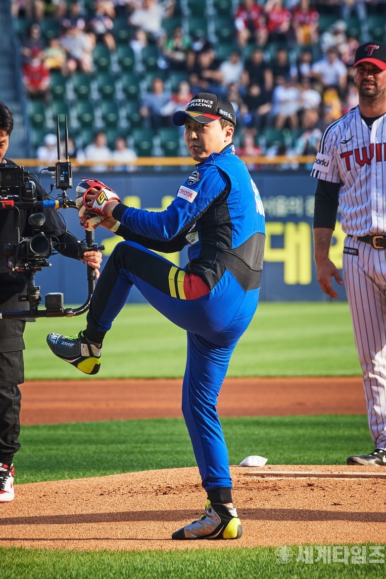[세계타임즈=방춘재 기자] 7월 1일 잠실야구장에 독특한 풍경이 연출됐다. 경기 전 블루 크롬 색상으로 빛나는 레이싱카가 ‘깜짝’ 등장한 것이다. 이 차량에서 내린 파란색 레이싱 슈트를 입은 드라이버가 마운드에 올라 힘차게 공을 던졌다.