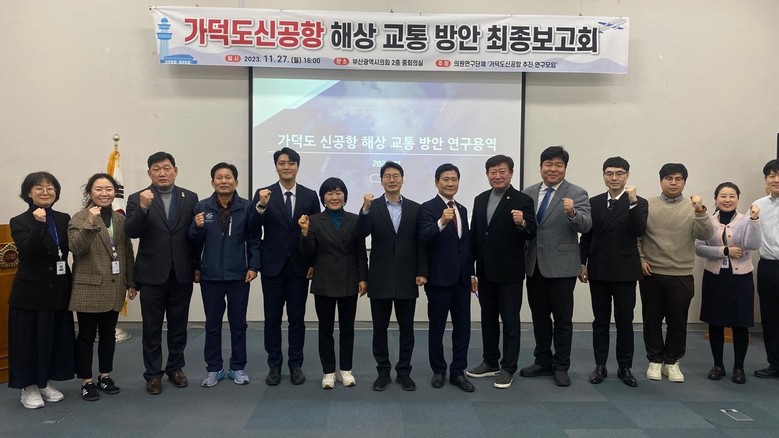 부산광역시의회 의원연구단체 ‘가덕도신공항 추진 연구모임’은 27일 오후 4시, 부산광역시의회 중회의실에서 ‘가덕도신공항 해상 교통 방안 연구용역’에 대한 최종보고회를 개최하였다.