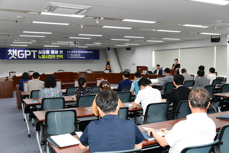[광주 세계타임즈=손권일 기자] 광주시의회 새로운노동특별위원회(위원장 채은지, 이하 새노동특위)가 27일 ‘챗GPT실습을 통해 본 노동시장의 변혁’이라는 주제로 광주광역시의회 전 의원 및 직원 대상 특강을 개최했다.