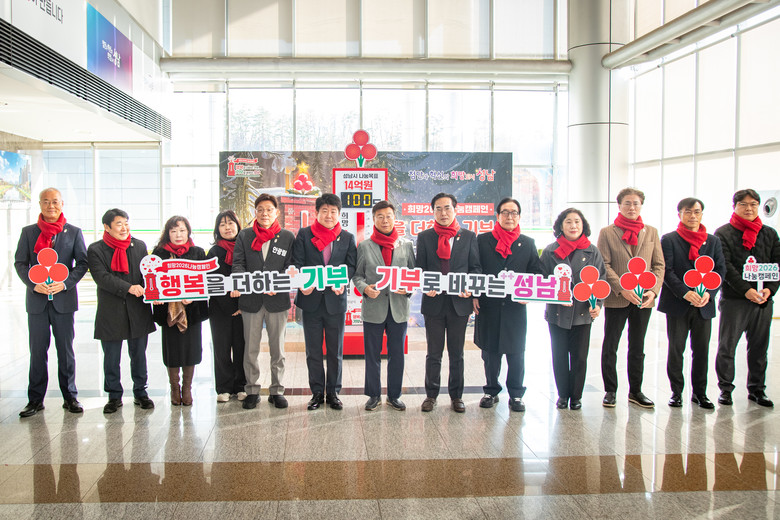 [성남시 세계타임즈=송민수 기자] 성남시의회(부의장 안광림)는 2일 성남시청 1층 누리홀 로비에서 열린 ‘희망2026 나눔캠페인 사랑의 온도탑 제막식’에 참석했다. 이번 제막식은 겨울철 취약계층을 돕기 위한 연말연시 성금 모금 캠페인의 시작을 알리는 뜻깊은 자리로, 경기도사회복지공동모금회가‘행복을 더하는 기부, 기부로 바꾸는 성남’을 슬로건으로 진행한다.
