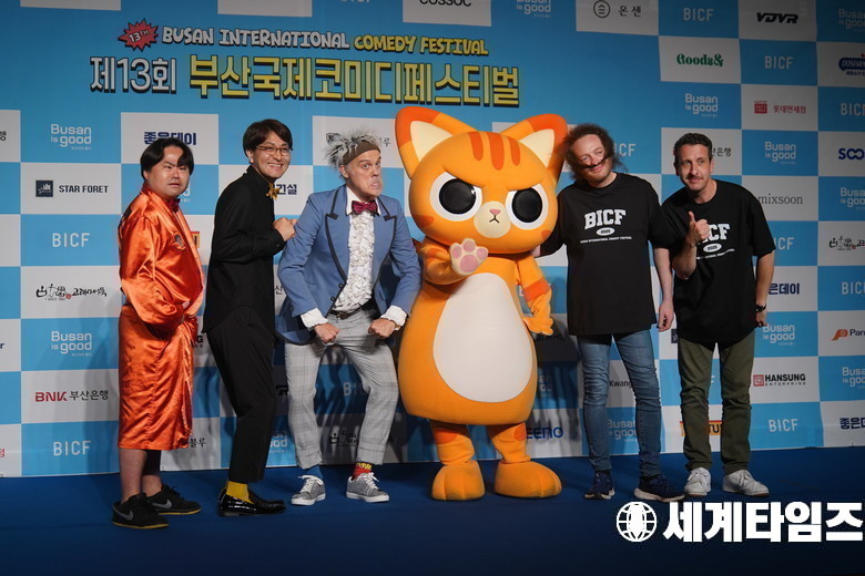 외국인 코비디언 우에쿠사 카즈히사, 이치가와 코이쿠치, 벙크토피아, 마쭈, 웍앤이 29일 오후 부산 해운대구 벡스코 오디토리움에서 진행된 ‘제13회 부산국제코미디페스티벌(BICF)’ 블루카펫 행사에 참석해 포즈를 취하고 있다.