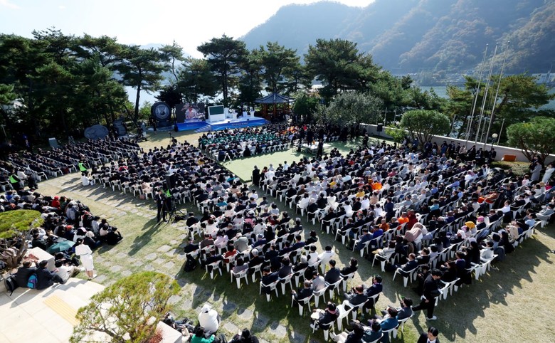 | ▲ 지난 1일 경기 청평 신천지 평화연수원에서 신천지예수교 증거장막성전 주최로 ‘제3기 만국초청 계시록 특강 종강식’이 진행되고 있다. [사진 제공 = 신천지예수교 증거장막성전] |