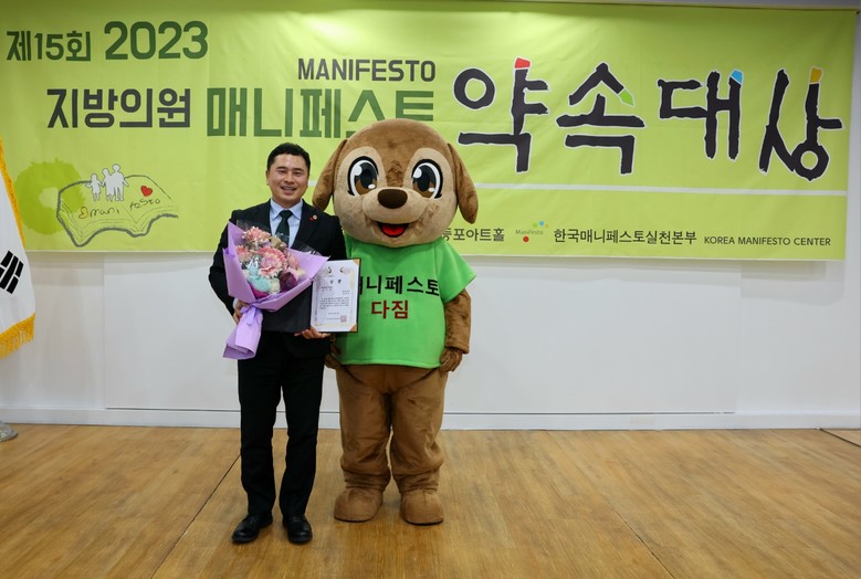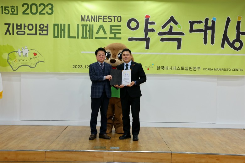 매니페스토 약속대상은 사단법인 한국매니페스토실천본부가 주최하며 광역·기초의원들의 공약이행 정도와 조례입안의 활동 실적을 평가해 시상하는 상으로 지방의회의 역량 강화와 주민 신뢰 기반 구축을 위해 개최하는 의미있는 상으로 알려져 있다.