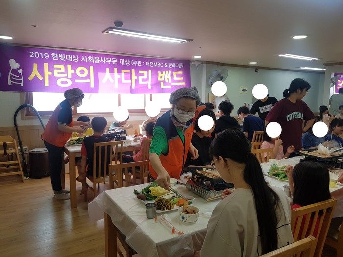 [대전=세계타임즈 이채봉 기자] 대전시 SNS 8천명 봉사단체 사랑의 사다리 밴드(리더 이정제)는 14일 오후16시, 대전구세군 혜생원(원장 김노학) 아동보육시설에서 삼겹살과 목살 봉사로 우리 사회의 따뜻한 사랑을 전달하였다.