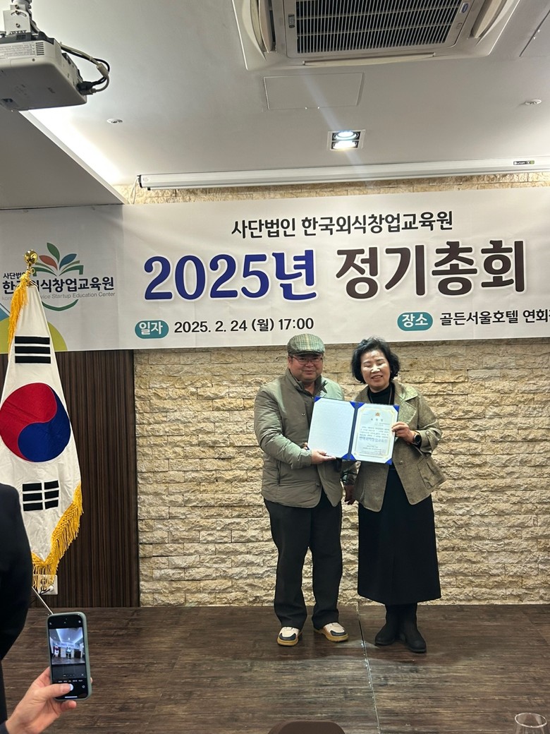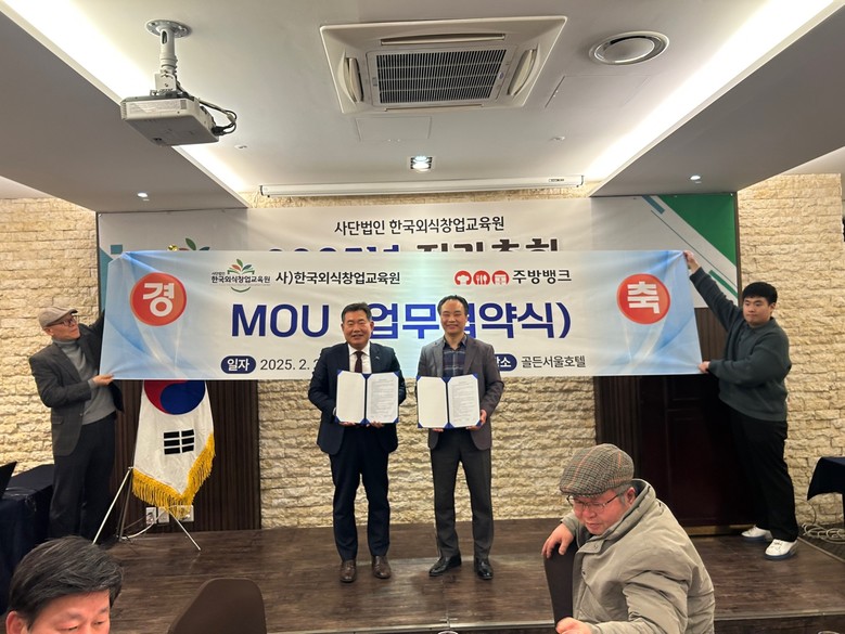 특히 사단법인 한국외식창업교육원 안형상 이사장과 2025년 정기총회 성황리 개최하는 자리에 '주방뱅크'강동원 대표이사와 엄무협약식도 맺었다. 두 단체는 엄무협약을 통해 실질적 협력관계를 발전시켜 나가기로 했다.