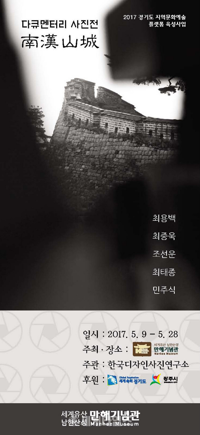 한국디자인사진연구소(소장 최용백)에서 기획한 <사진, 남한산성을 품다.>(2015) 출판은 남한산성이 세계유산 등재를 위한 소망에서 기획되었는데 출판을 진행하면서 남한산성이 세계유산으로 등재되었고 이번 전시 또한 3주년을 기념하는 특별한 전시가 되었다.