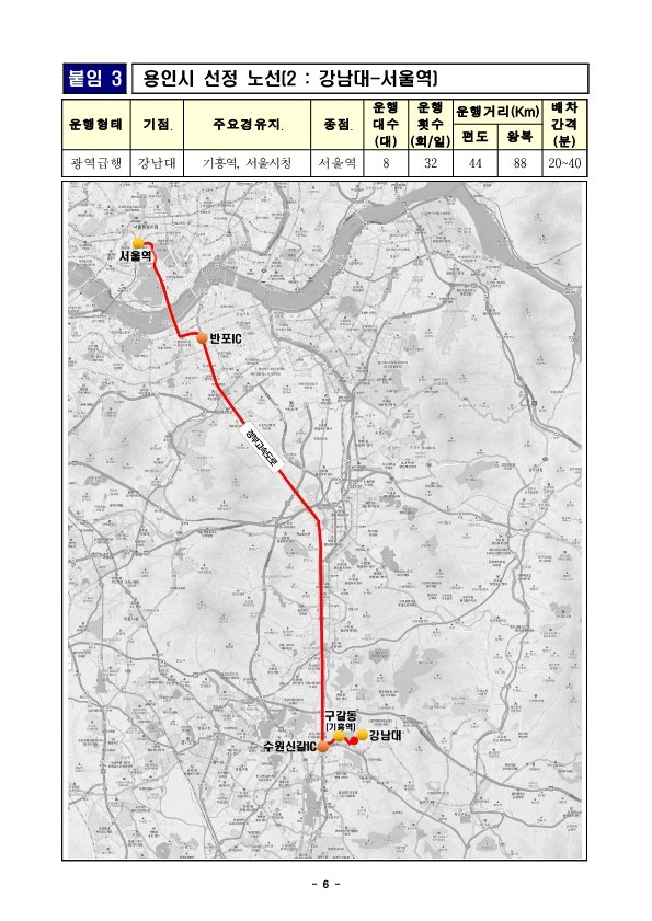 대광위는 ‘25년 광역버스 준공영제 사업으로 경기도에 전환노선 3개와 신규노선 9개 총 12개 노선을 선정했으며, 이 가운데 용인시는 “양지지구–서울역”과 “강남대–서울역” 두 노선이 반영됐다. 양지지구와 강남대 일대는 최근 인구 증가, 교육시설 확충, 산업단지 조성 등으로 광역교통 수요가 빠르게 늘어난 지역으로 서울 도심과의 직결 노선 필요성이 지속적으로 제기돼 왔다.