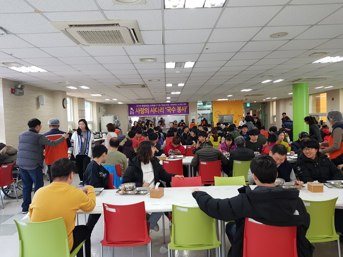 한철웅 국수봉사단장은 “오늘 잔치국수를 맛있게 드시는 장애인분들의 모습에서 행복과 보람을 느낀다.”고 말했다.