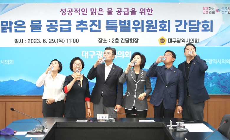 김원규 맑은물특위 위원장은 “맑은 물은 대구 시민들의 건강과 삶의 질에 직결되는 중요한 요소인 만큼 최우선 과제로 삼아 반드시 해결해야 한다”며, “이번 간담회에서 나온 다양한 의견들이 사업 추진과정에 잘 반영돼 대구시의 먹는 물 문제가 근원적으로 해결될 수 있도록 각별한 노력을 당부한다"고 말했다.