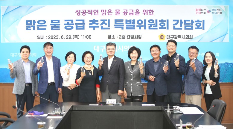 [대구 세계타임즈=한성국 기자] 대구시의회 맑은물공급추진특별위원회는 6월 29일(목) 오전 11시 대구시의회 2층 간담회장에서 ’성공적인 맑은 물 공급을 위한 특별위원회 간담회‘를 개최했다.
