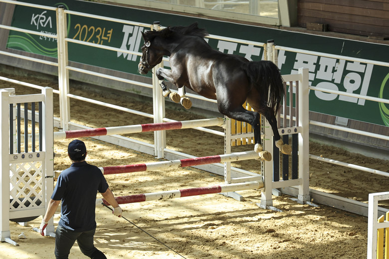 스포츠말 품평회에 참가하기 위해 제주와 내륙에서 41두의 2, 3세 어린 승용마들이 배와 차에 몸을 싣고 서귀포로 몰려들었다. 뛰어난 승용마로 성장할 가능성을 옅보기 위해 전문 심사단들은 날카로운 눈으로 체형과 보행을 평가했다. 사람의 기승 없이 말 스스로 장애물을 뛰어넘는 ‘프리점핑’ 부문에서 승용마들은 그간 훈련해온 비월 능력을 과시했다. 특히 2세마 ‘모래시계’는 프리점핑에서 뛰어난 기량을 선보이며 전체 참가마를 통틀어 가장 높은 점수를 획득했다. 이번 품평회의 심사위원이자 프랑스 승용마 품평관 자격을 소유한 정현아 교수(제주한라대학교 마사학과)는 “십여년 전만 해도 국산 승용마의 품질은 외국에 비해 현저히 떨어졌지만 수년간 대회가 이어질수록 국산 승용마들의 품질이 눈에 띄게 좋아지는걸 느낀다. 확실히 국내 말산업이 빠르게 발전하고 있다는게 느껴지며 앞으로의 성장이 기대된다”고 소감을 전했다.