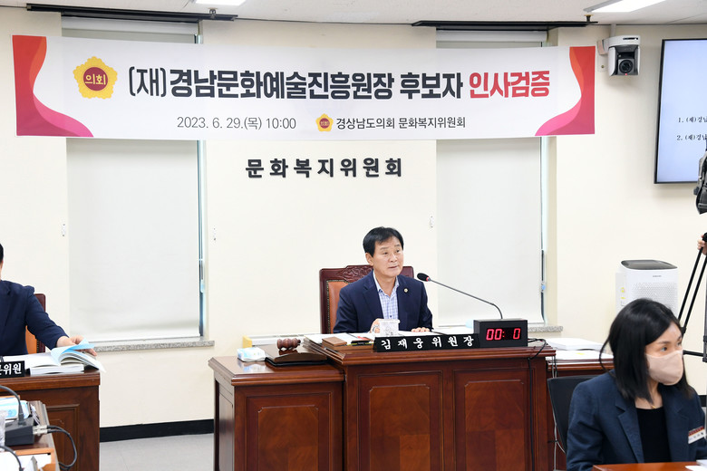 [경남 세계타임즈=최성룡 기자] 경남도의회 문화복지위원회(위원장 김재웅, 이하 “위원회”)는 29일 김종부 (재)경남문화예술진흥원장 후보자에 대한 인사검증을 실시하고 경과보고서를 채택했다.