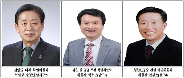 [대구=세계타임즈 한성국 기자] 대구광역시의회(의장 장상수)는 9월 18일(금)에 열린 제277회 임시회 제3차 본회의에서 지역 현안 대응을 위한 ▲감염병 대책 특별위원회, ▲맑은 물 공급 추진 특별위원회, ▲통합신공항 건설 특별위원회의 구성을 완료하고 본격적인 활동에 들어간다.
