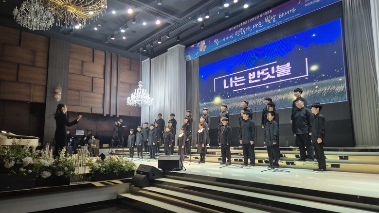 [아산시 세계타임즈=이현진 기자] 아산중학교(교장 강희준)는 11월 28일(금) 아산터미널 8층 웨딩홀에서 제12회 소년합창단 ‘Boys Voice’ 정기연주회를 성황리에 개최했다. 약 300명의 관람객이 참석한 가운데 진행된 이번 공연은 “별이 아니어도 괜찮아, 나는 빛날 테니까”라는 주제로, 학생들이 한 해 동안 쌓아온 음악적 성장을 무대에서 자연스럽게 풀어냈다.