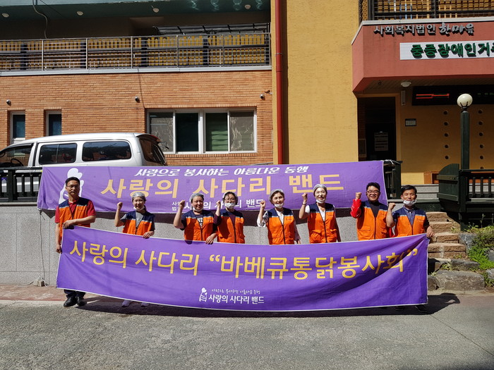 [세계타임즈 이장성 기자] 다양한 봉사를 꾸준히 실천하고 있는 SNS 대전시 봉사단체 사랑의 사다리 밴드(리더 이정제)는 5일 오후14시, 장태산 휴양림에 위치한 중증장애아동거주시설 한걸음에서 바비큐 통닭 봉사로 우리 사회의 따뜻한 사랑을 전달하였다.