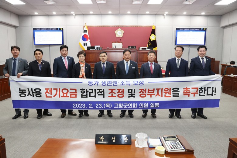 고창군의회는 이번 결의안을 통해 ▲정부는 ‘농사용 전기’ 인상 요인 발생 시 농업의 특수성과 요금 형평성을 고려하여 용도별 인상률을 조정하는 ‘정률 인상’을 적용할 것, ▲정부는 인상된 전기요금에 대해 실질적이고 즉각적인 국비 보조 등 구체적인 농가 지원책을 마련할 것 등을 촉구했다.