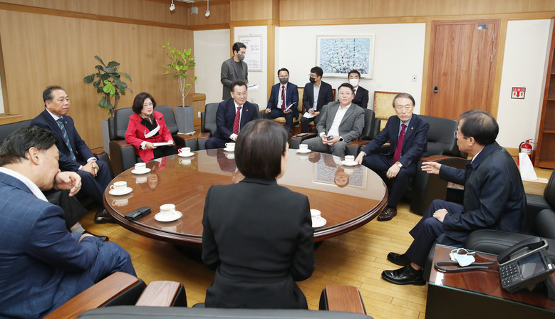 [대구 세계타임즈=한성국 기자] 대구광역시의회 통합신공항 건설 특별위원회(이하 ‘특위’, 위원장 박소영 의원)는 11. 7.(월) 동인청사에서 홍준표 대구시장과 간담회를 가지고 통합신공항 건설 사업의 추진상황 및 주요 현안에 대한 정보를 공유했다.