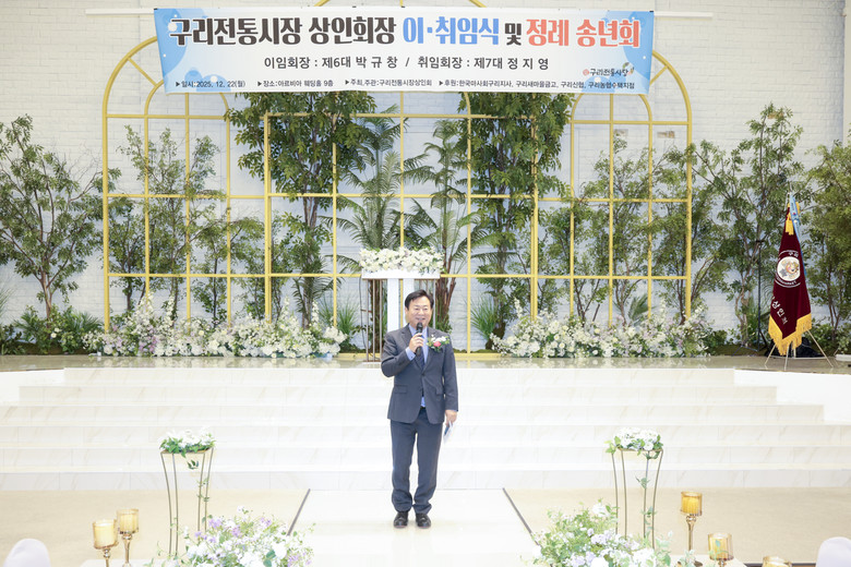 [구리시 세계타임즈=송민수 기자] 12월 22일 구리전통시장 상인회는 한 해를 마무리하며 회원들의 노고를 격려하기 위해 ‘2025년 구리전통시장 송년회 및 상인회장 이취임식’을 개최했다.