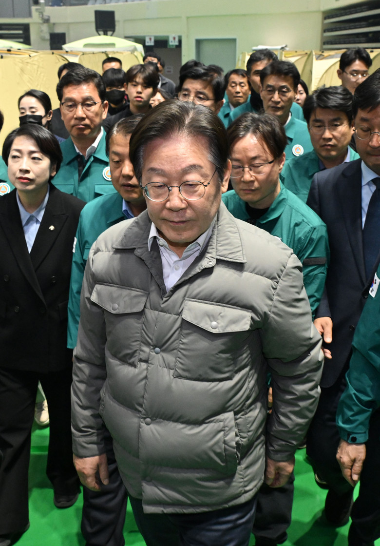 [세계타임즈 = 심귀영 기자] 더불어민주당 이재명 대표가 26일 오후 경북 안동시 안동체육관에 마련된 산불 대피시설을 찾아 시설을 살피고 있다. 이 대표는 이날 공직선거법위반 혐의 항소심 무죄 선고 후 첫 일정으로 이곳을 찾았다. 2025.3.26 [공동취재]