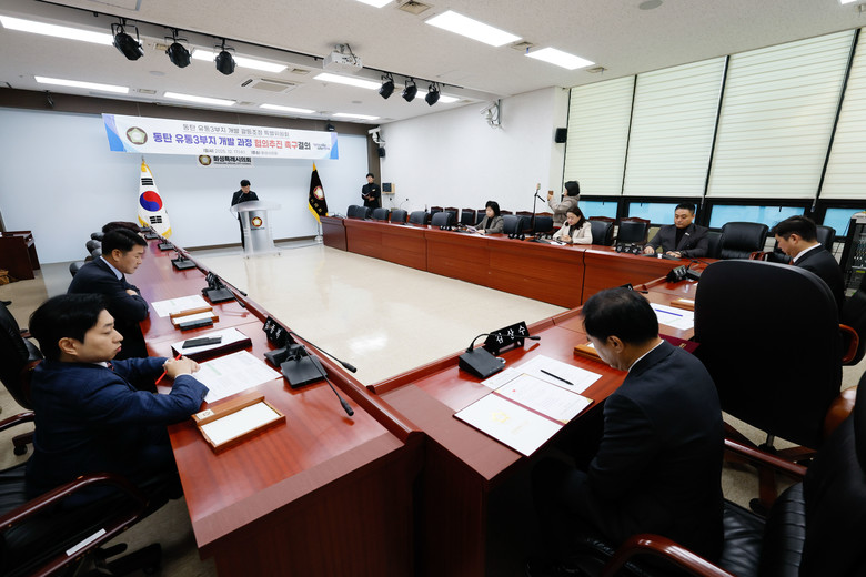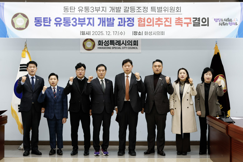 [화성시 세계타임즈=송민수 기자] 화성특례시의회 「동탄 유통3부지 개발 갈등조정 특별위원회」(이하 특별위원회)는 17일 의회 대회의실에서 동탄 유통3부지 개발과정 협의추진 촉구결의를 진행했다.