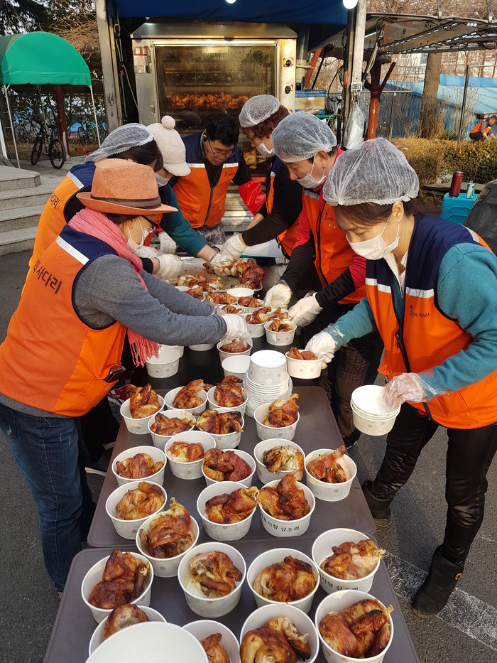 신상일 통닭봉사 단장은 “뜨거운 통닭을 맛있게 드시는 이주민들의 모습에서 행복과 보람을 느낀다.”고 말했다.