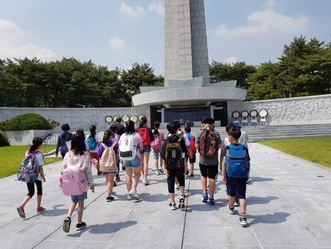 | ▲ 동작구 학생 대상으로 현충원근린공원에 방문해 역사와 문화재 등 공원탐방 프로그램을 진행했다. |