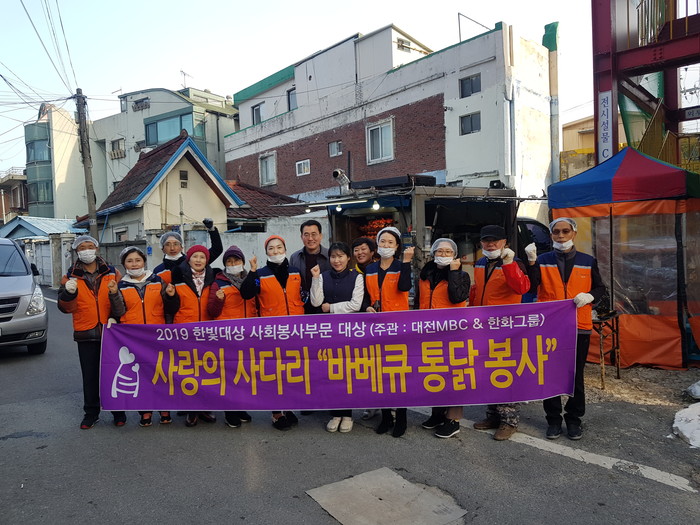 [대전=세계타임즈 이채봉 기자] 대전시 SNS 8천명 봉사단체 사랑의 사다리 밴드(리더 이정제)는 9일 오후3시, 동구 삼성동 행복드림 노인전문요양원(원장 배도수)에서 바비큐 통닭 봉사로 사회적 효행을 실천 하였다.