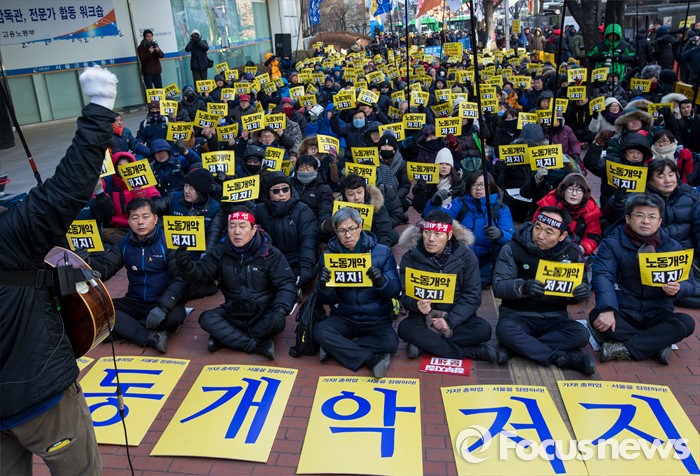 송호준 민주노총 서울지부 사무처장은 결의대회 시작 전 "정부가 지난 22일 더욱 쉬운 해고와 일방적 취업규칙 변경을 자유롭게 하는 정부지침을 발표하며 자본가들이 마음 놓고 착취할 수 있는 사회로 바꾸겠다고 선언했다"며 "우리 노동자들은 엄동설한의 겨울을 뚫고 강력한 투쟁으로 맞설 것"이라고 말했다.