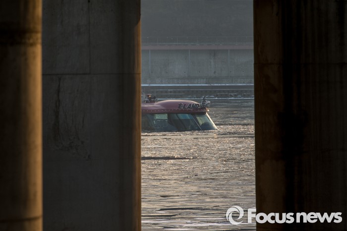 (서울=포커스뉴스) 26일 오후 서울 한강 영동대교 인근을 지나던 한강유람선이 침수, 구조대원들이 구조활동과 견인 작업을 하고 있다.