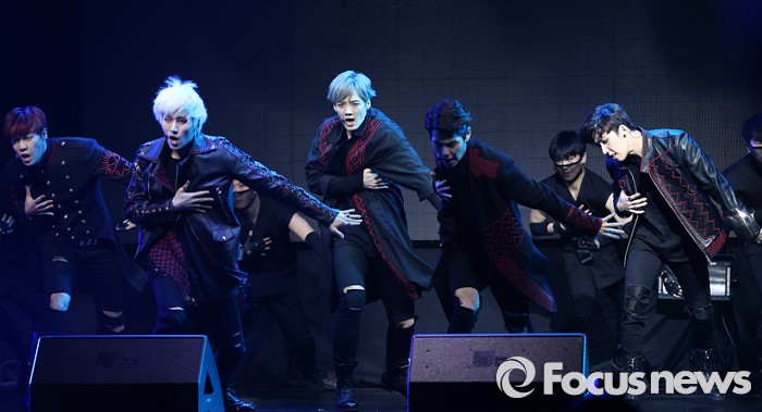 (서울=포커스뉴스) 30일 오후 서울 마포구 예스24 무브홀에서 열린 아이돌그룹 소년공화국의 세번째 미니앨범 [BR: evolution] 발표 쇼케이스에 참석한 멤버들이 'Get Down'무대를 선보이고 있다.