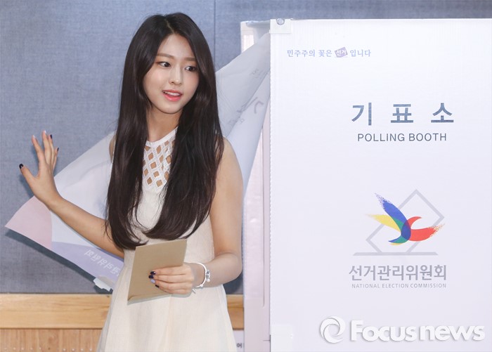(서울=포커스뉴스) 20대 총선을 닷새 앞두고 사전투표가 이틀동안 실시되는 8일 오후 서울 강남구 청담동주민센터에 마련된 사전투표소에서 총선 홍보대사인 그룹 AOA의 설현이 투표를 하고 있다.