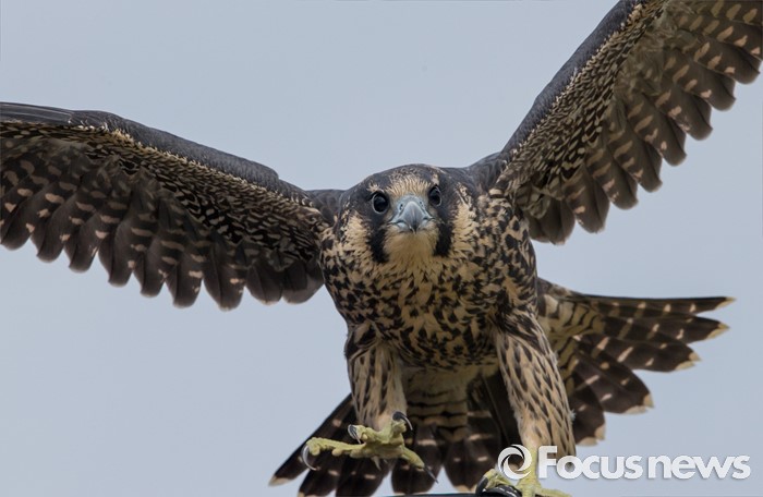(인천=포커스뉴스)어린 송골매가 인천시 수도권 매립지 언덕에서 날카로운 발톱을 드러내 보이고 있다.