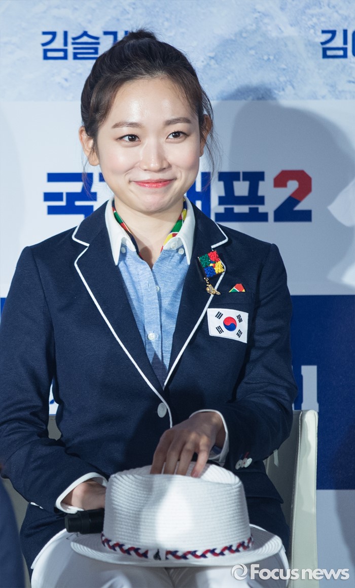 (서울-포커스뉴스) 6일 오전 서울 중구 동대문 메가박스에서 열린 영화 '국가대표2' 제작보고회에 참석한 배우 김슬기가 미소를 짓고 있다.