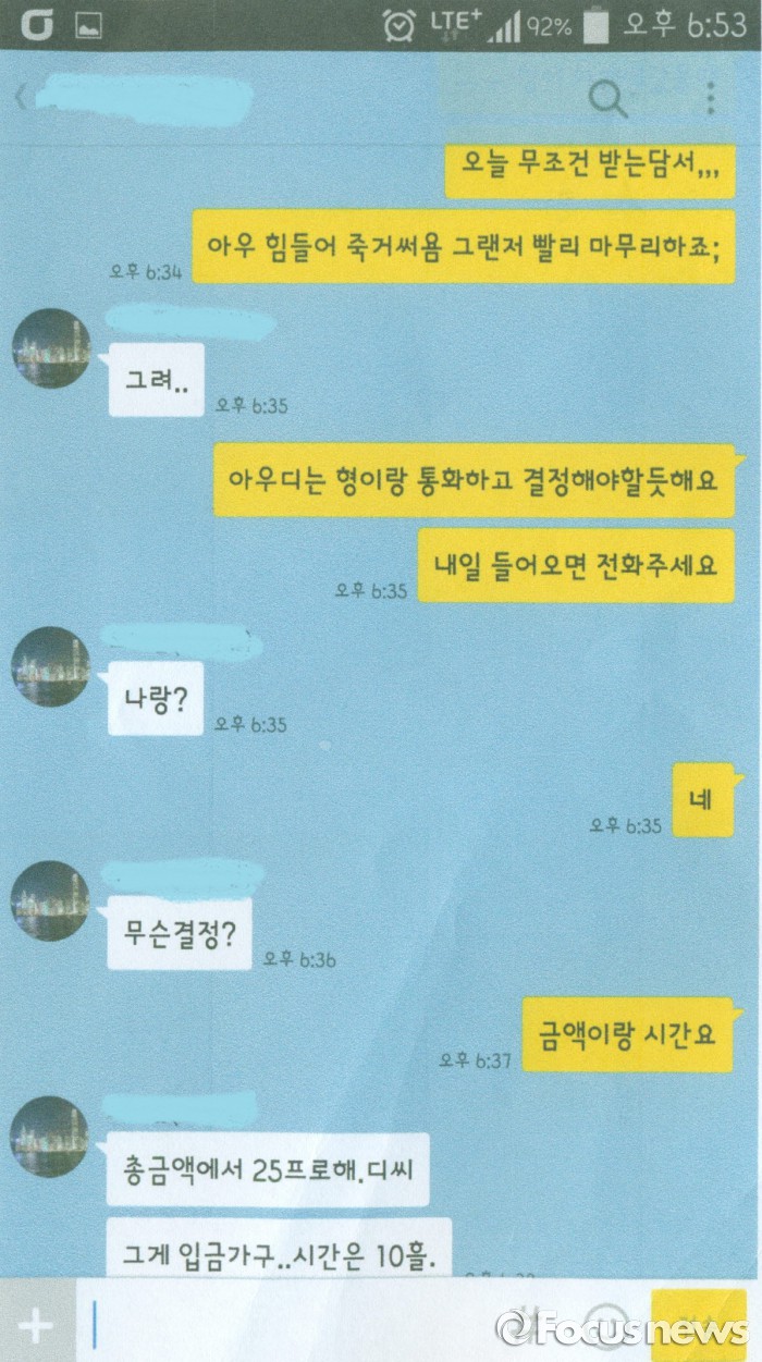 경찰 관계자는 "파악된 48명 외에 피해자가 더 있을 것으로 보고 수사를 확대해 나갈 방침"이라고 밝혔다.피의자 노모(39)씨가 피해자들을 속이기 위해 일당들과 주고받은 카카오톡 메신저 내용 <사진출처=서울 종암경찰서>