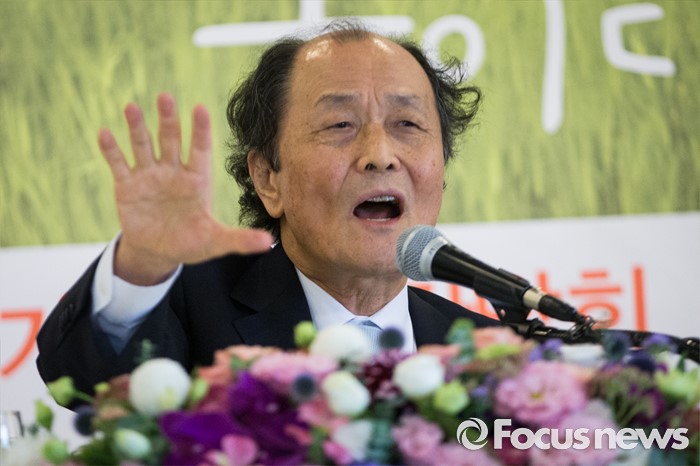 (서울=포커스뉴스) 조정래 소설가가 12일 오전 서울 중구 한국프레스센터에서 '풀꽃도 꽃이다' 출간기념 기자간담회에서 최근 파문을 일으킨 나향욱 전 교육부 정책기획관의 '민중은 개·돼지' 발언을 강도 높게 비판하고 있다.