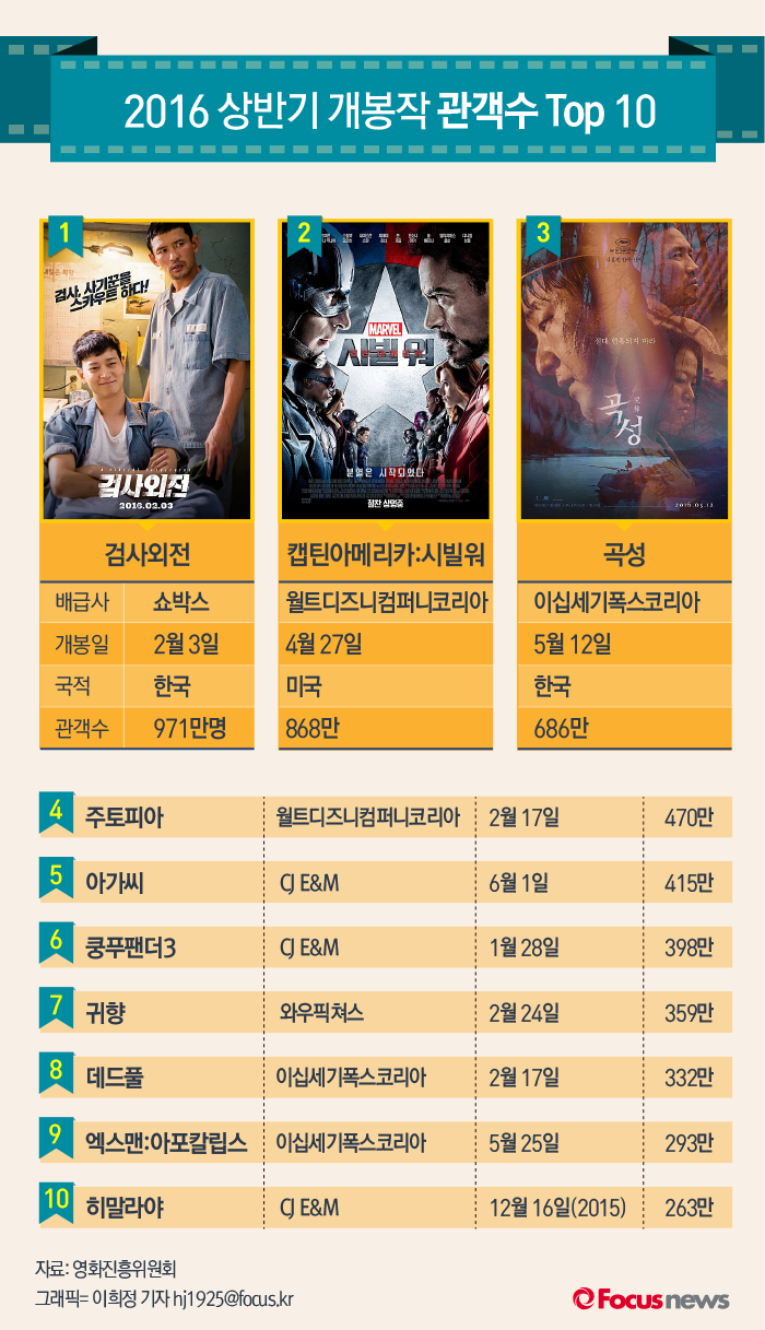 | △ [그래픽] 2016 상반기 개봉작 관객수 Top 10 |