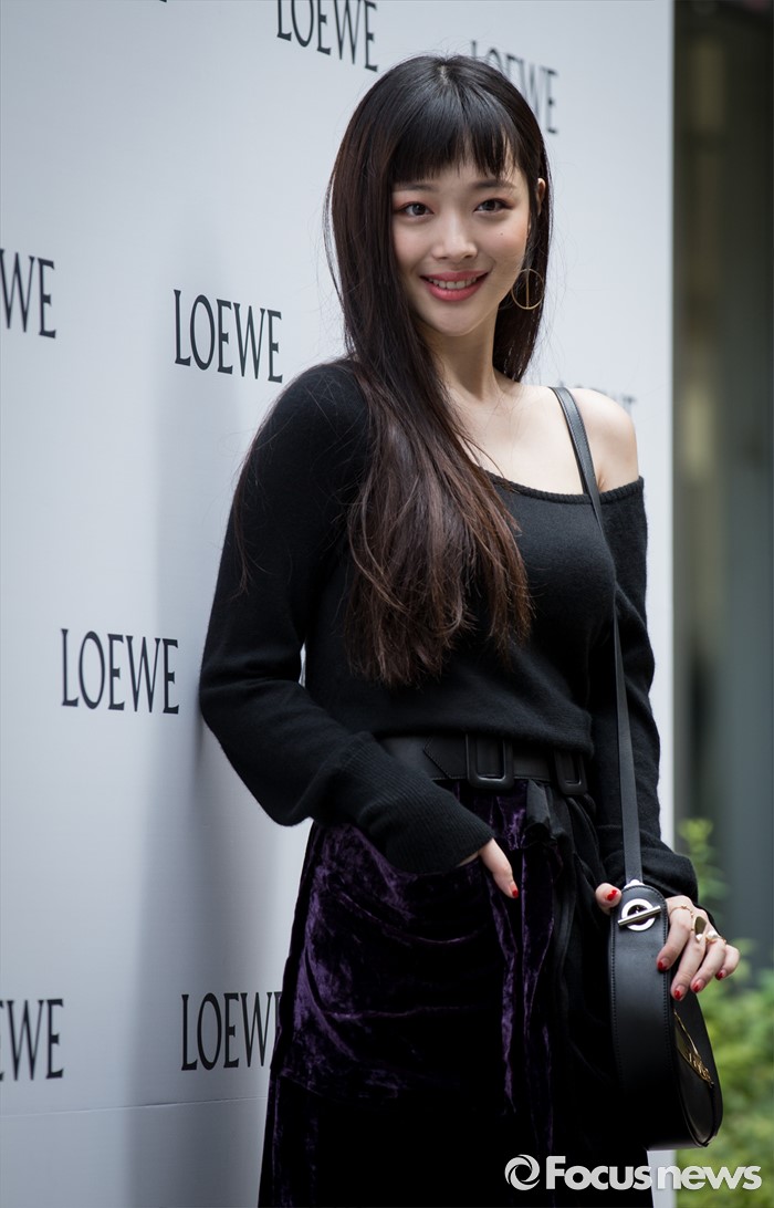 (서울=포커스뉴스) 28일 오후 서울 논현동의 한 갤러리에서 열린 스페인 패션브랜드 '로에베' 포토콜 행사에 참석한 배우 설리가 포즈를 취하고 있다.