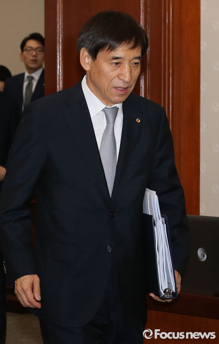 (서울=포커스뉴스) 이주열 한국은행 총재가 11일 오전 서울 중구 한국은행에서 열린 제15차 금융통화위원회에 참석하고 있다.