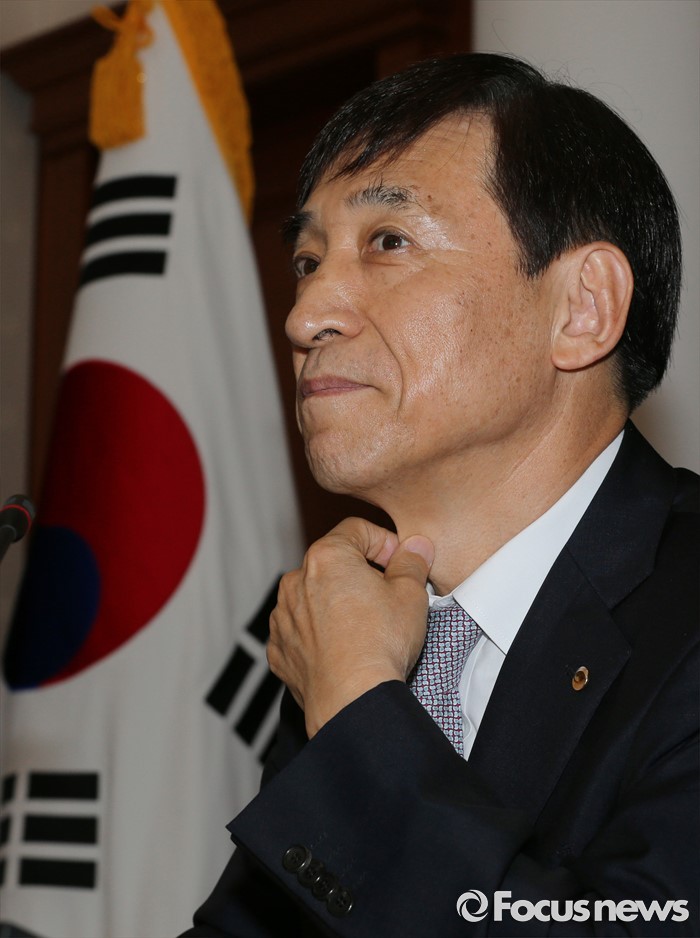 (서울=포커스뉴스) 이주열 한국은행 총재가 11일 오전 서울 중구 한국은행에서 열린 제15차 금융통화위원회에 참석해 목을 만지고 있다.