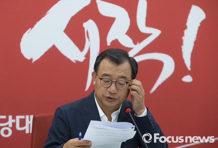 (서울=포커스뉴스) 이정현 새누리당 대표가 11일 오후 서울 여의도 국회에서 박근혜 대통령과의 오찬 결과 브리핑을 하고 있다.