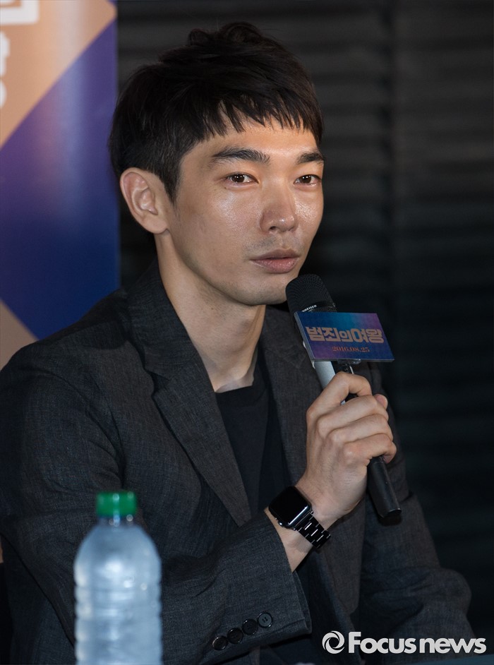 (서울=포커스뉴스) 11일 오후 서울 성동구 CGV 왕십리에서 열린 영화 '범죄의여왕' 언론시사회에 참석한 배우 백수장이 취재진 질문에 답변하고 있다.